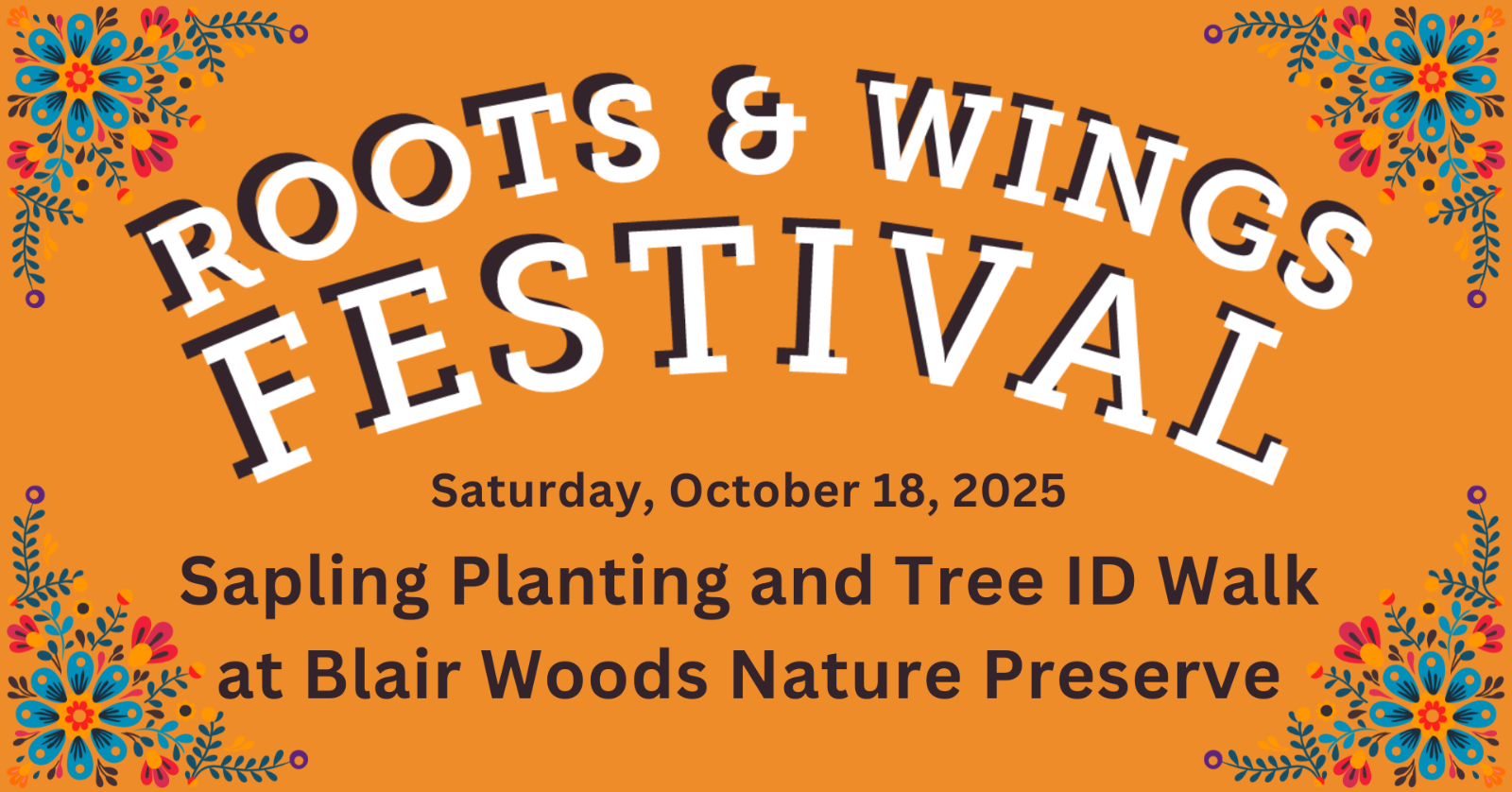 We’re excited to be hosting an official Roots & Wings Festival Event! The Roots & Wings Festival is held from Saturday, October 18th -Sunday, November 2nd, and is a community-wide celebration honoring Arbor Day and Monarch Appreciation Day in Austin. Join us in celebrating the Roots & Wings Festival on Saturday, October 18 with a Sapling Planting and Tree ID Walk at Blair Woods Nature Preserve.